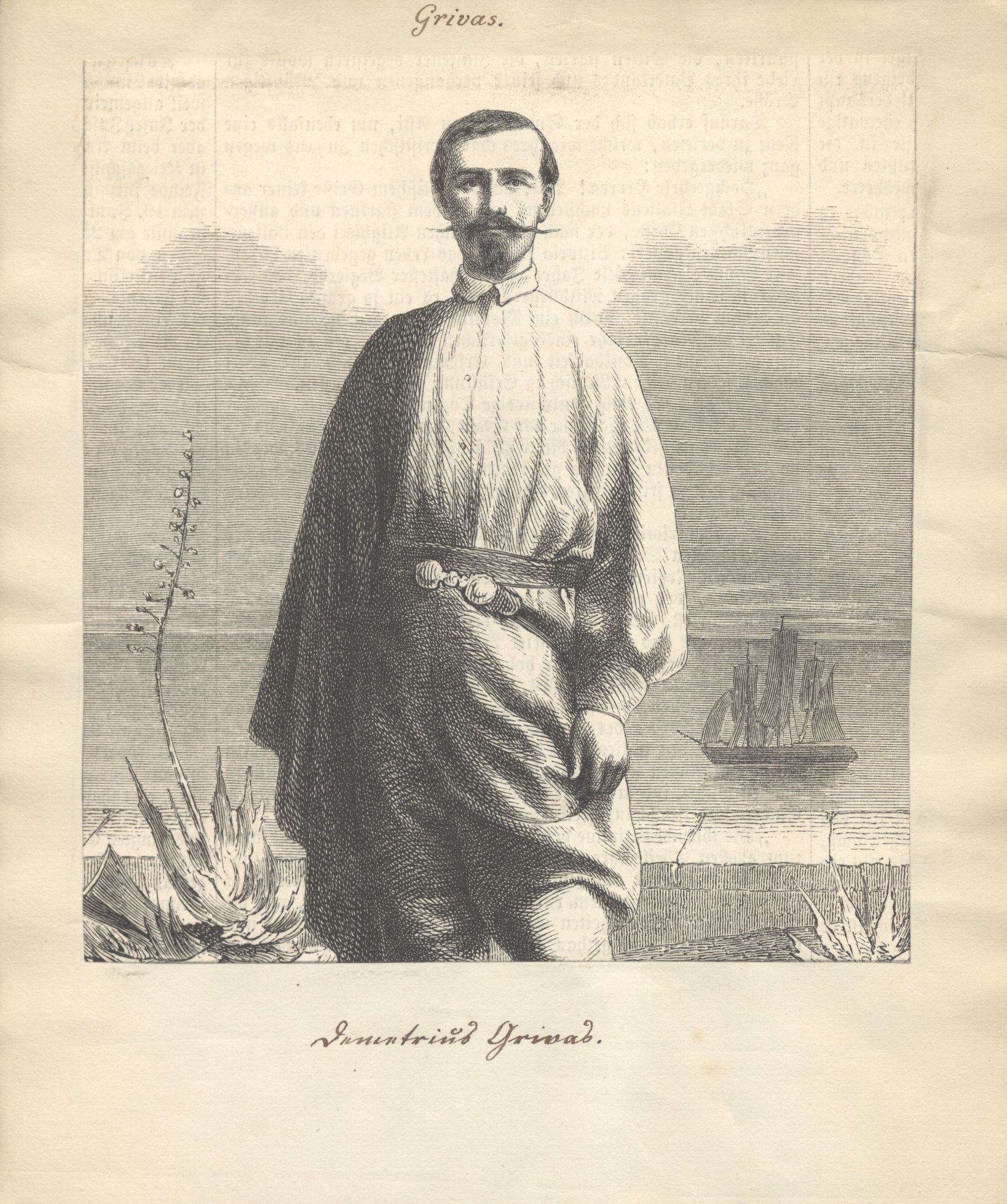 [Dreiviertelfigur stehend an einer Küste ; ausgeschnitten aus einem größeren Bild, das Grivas in Ganzfigur zeigt]