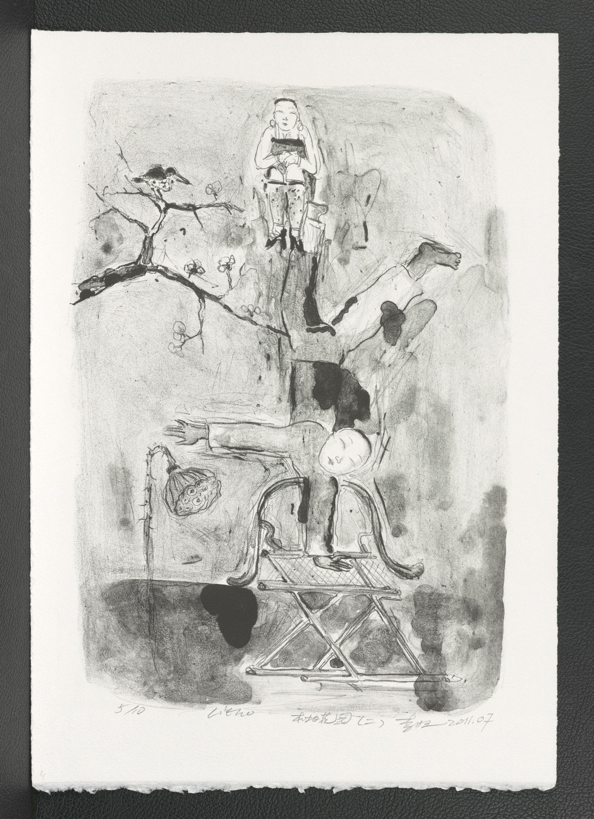 Lithographie (Kreide, Tusche); ca. 38,7 x 26,6 cm (Bild) bzw. 45,5 x 31,7 cm (Blatt). - Vom Künstler mit Bleistift bezeichnet, datiert, numeriert (5/10) und signiert. - Titel und Künstlerangabe in chinesischen Schriftzeichen. - MIT DIGITALAUFNAHME