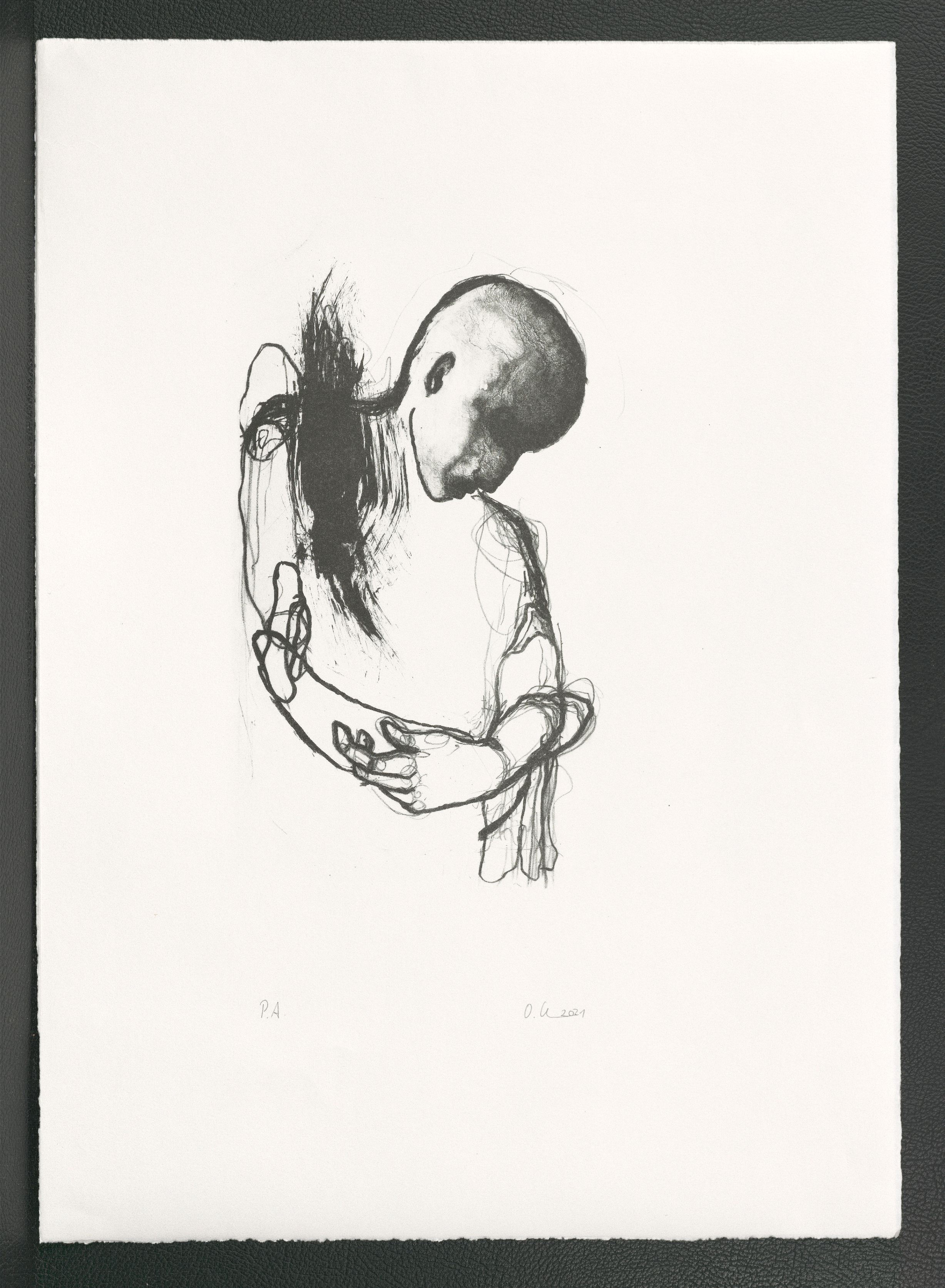 Lithographie (Kreide, Tusche); ca. 28,1 x 17,2 cm (Bild) bzw. 53,5 x 38,3 cm (Blatt). - Von der Künstlerin mit Bleistift auf der Rückseite bezeichnet, auf der Vorderseite datiert und signiert. - MIT DIGITALAUFNAHME