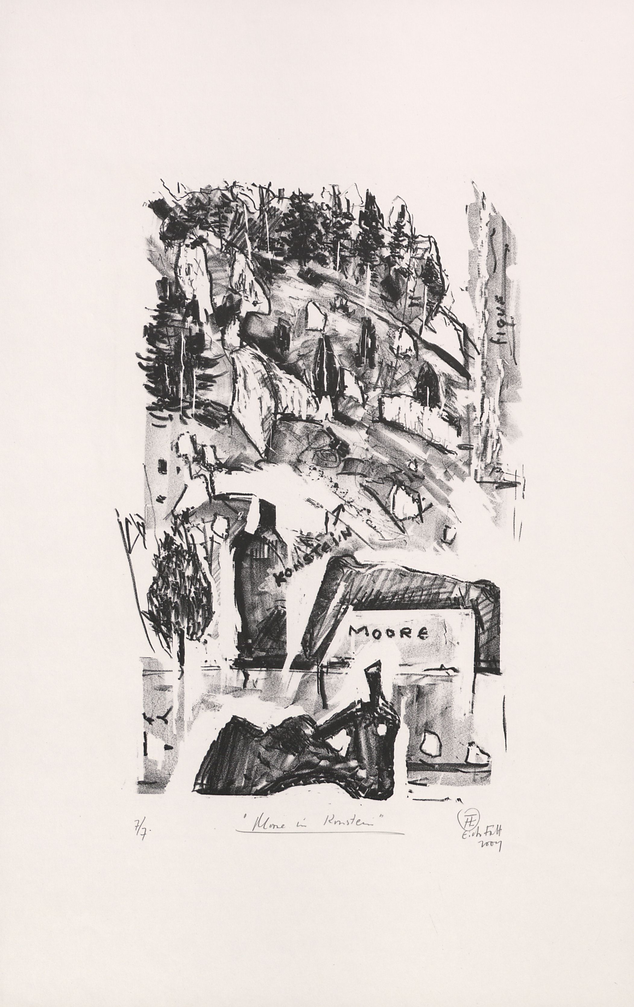 Kreidelithographie; ca. 35 x 23 cm. - Vom Künstler mit Bleistift bezeichnet, datiert, numeriert (7/7) und signiert. - MIT DIGITALAUFNAHME