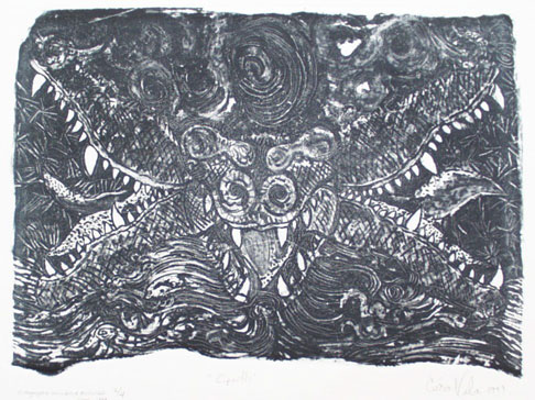 Dauerleihgabe der Stadt Eichstätt. - Handschriftliche Notizen César Vilas zu "Cipactli" s. Dokumentation in der Handschriftenabteilung unter Eichstätt / Lithographie-Werkstatt 1999