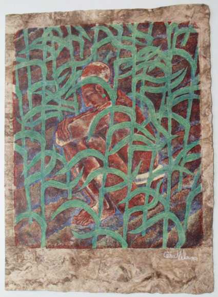 [Sitzender Indianer in einem Feld]