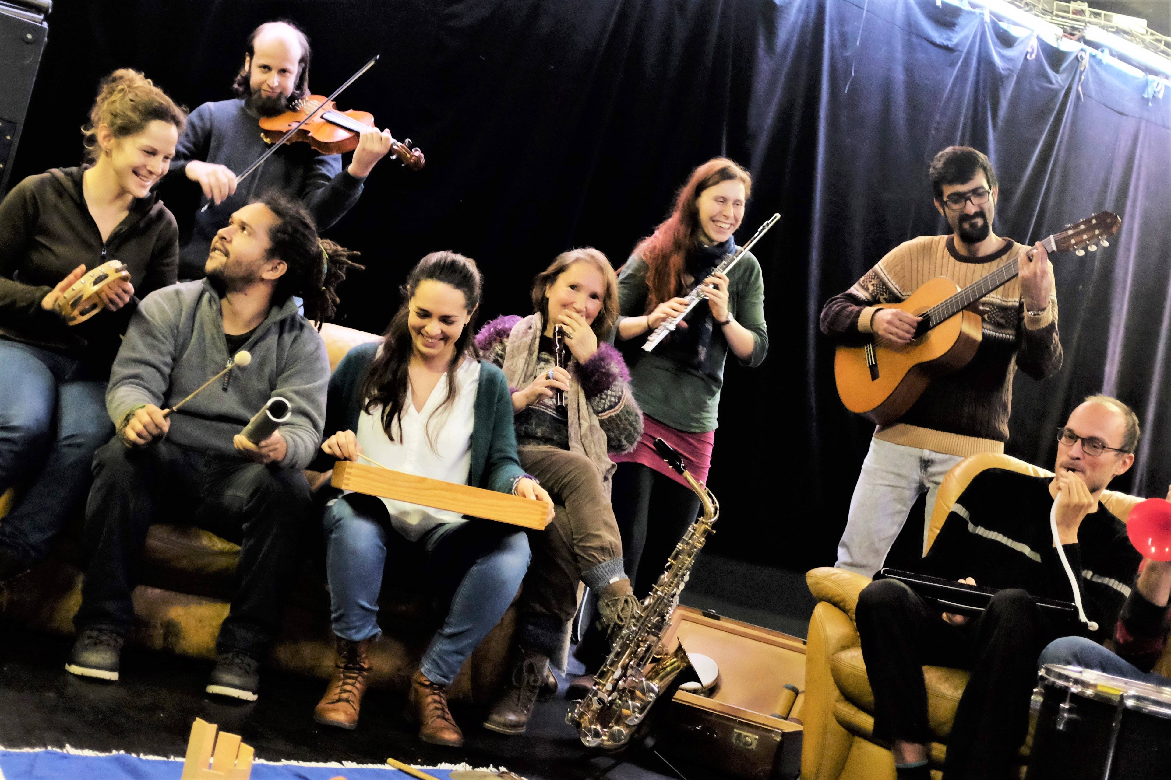Einen Zugang zu Musik über gesellschaftliche Grenzen hinweg bietet das „Community Orchester“, das Mirjam Bauer (3.v.r.) seit November in ihrer Heimatstadt Salzburg wöchentlich anbietet. (Foto: Arnold Becker/upd)