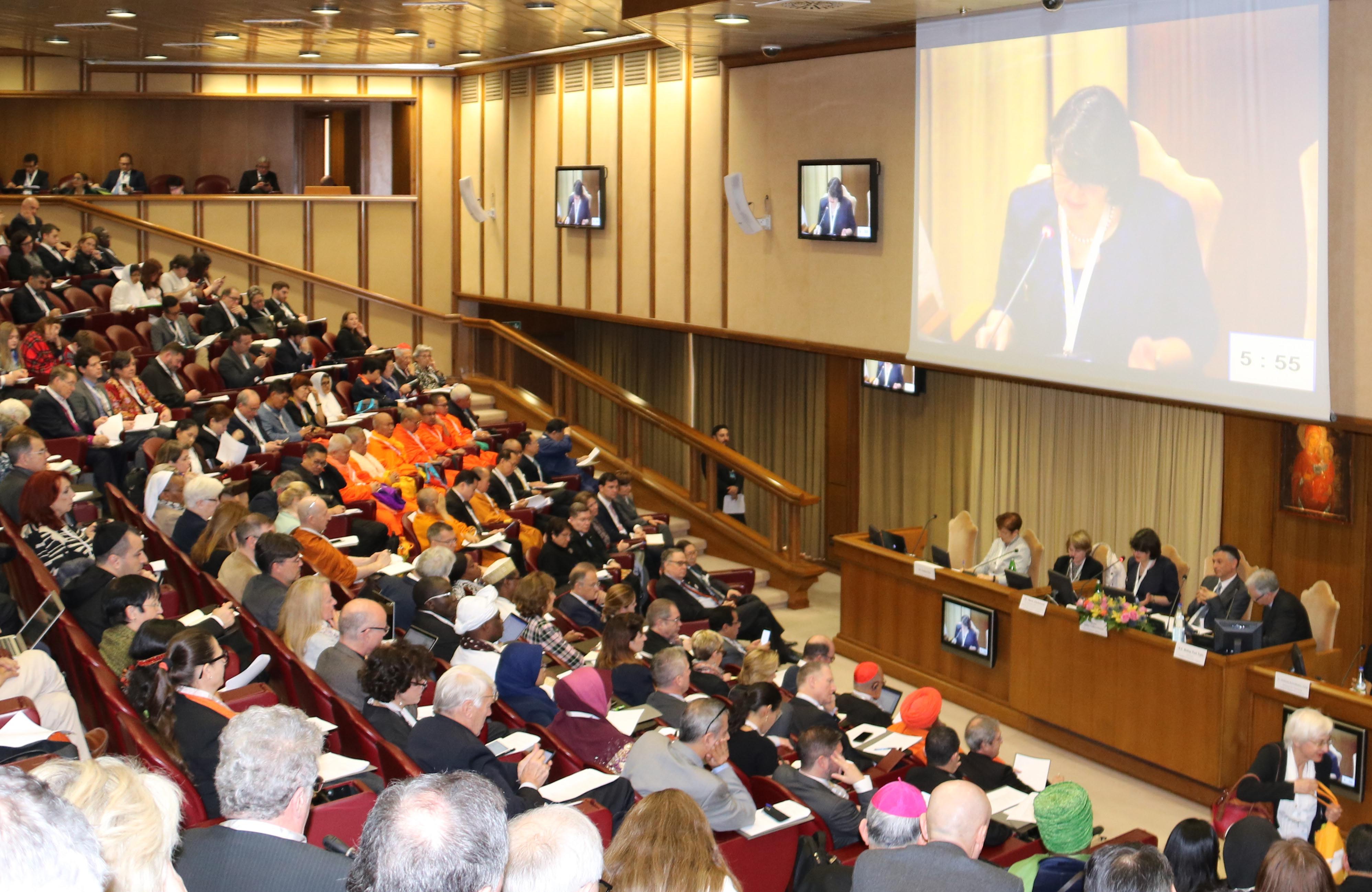 Vertreter der Weltreligionen, Entwicklungsexperten, UN-Repräsentanten und weitere Vertreter internationaler Organisationen versammelten sich zu der dreitägigen Konferenz in der Aula del Sinodo im Vatikan (Foto: Meier/upd)