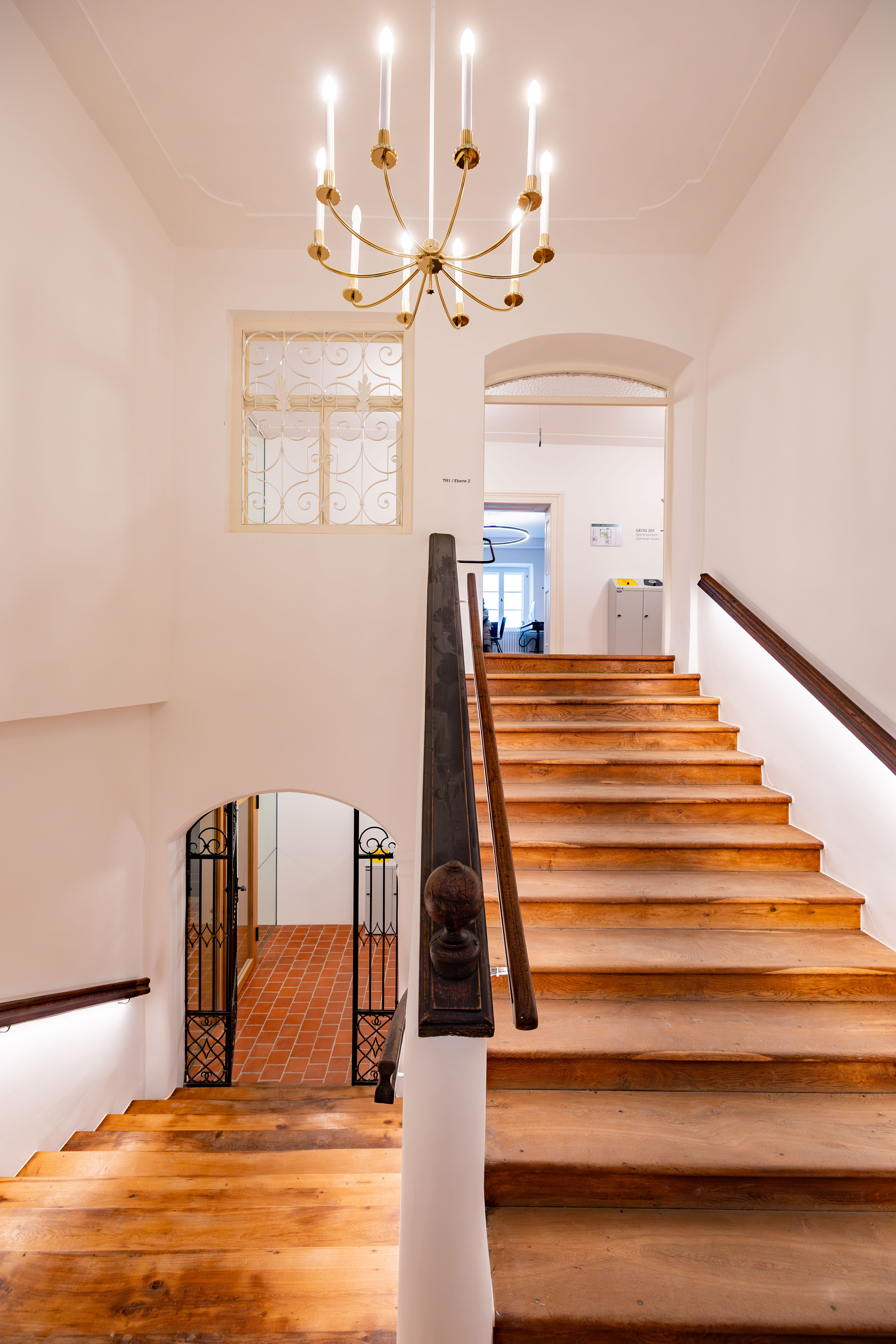 Innenansicht des Collegium Georgianum in Ingolstadt. Das Gebäude aus dem 15. Jahrhundert ging unmittelbar mit der Gründung der ersten bayrischen Landesuniversität in Ingolstadt einher. Das mehrstöckige Bauwerk mit seinen später hinzugekommenen Anbauten steht gegenüber der Hohen Schule. Nach der Sanierung wird das Kollegiengebäude durch die KU wieder universitär genutzt. Unter anderem hat hier das Mathematische Institut für Data Science und Maschinelles Lernen seinen Sitz.